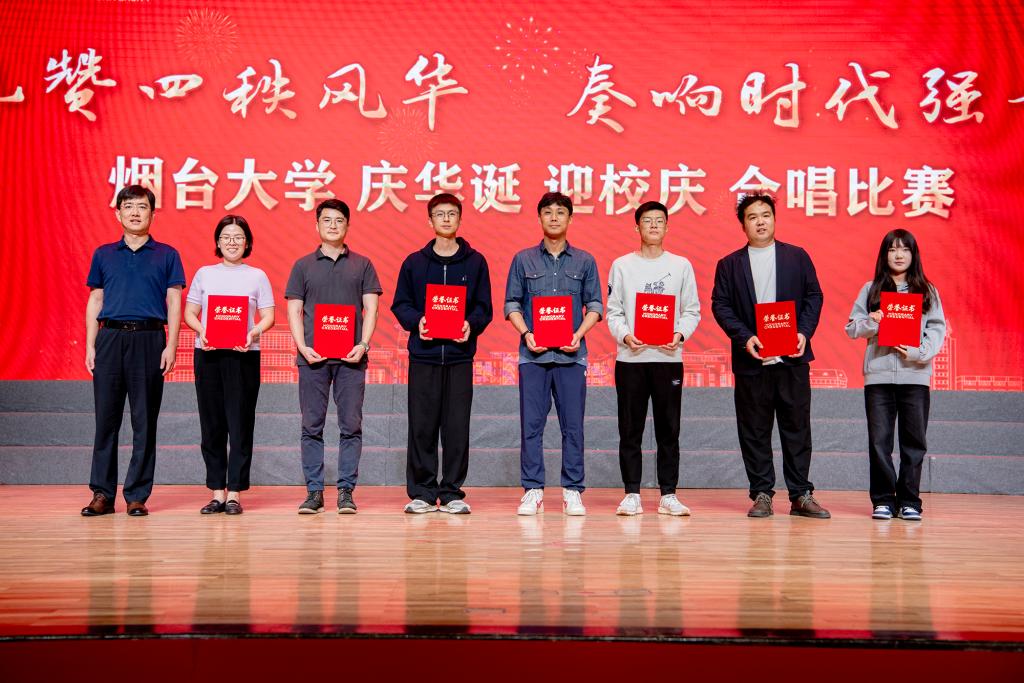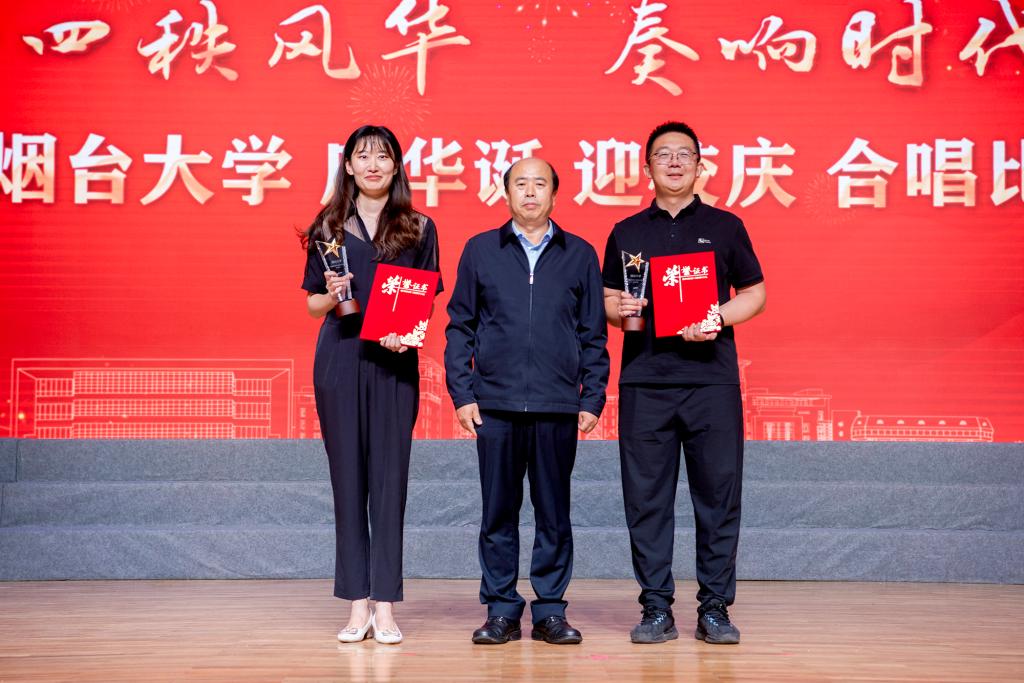 【本站訊】七十五載風雨兼程,鑄就輝煌;四十載春華秋實,見證成長。9月26日至27日,為慶祝中華人民共和國成立75周年、煙臺大學建校40周年,煙臺大學“禮贊四秩風華 奏響時代強音”合唱比賽在主校區弘毅廳和八角灣校區文化藝術中心舉行。黨委副書記、校長郝曙光,黨委常委、副校長初磊,黨委常委、統戰部部長畢朝輝出席活動并為獲獎團隊頒獎。