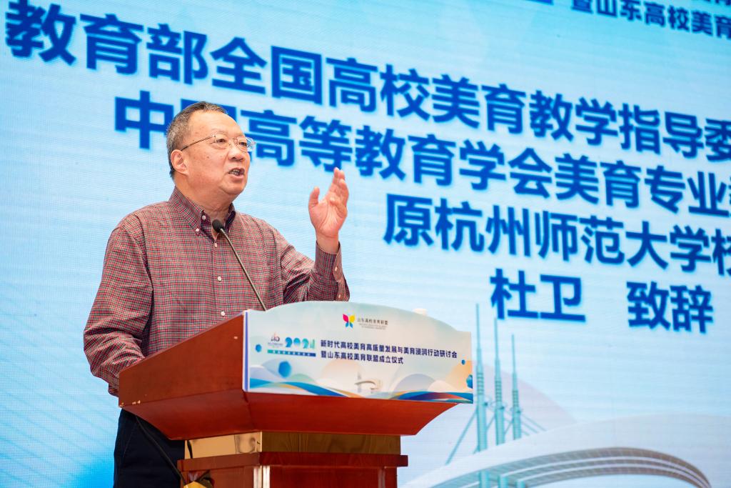 杜衛在致辭中結合多年來在高校調研美育工作中的體會,提出要在五育并舉的大格局中做好美育工作,明確“三個浸潤”具體目標,落實八項美育浸潤行動。要加強美育干部和美育教師的隊伍建設,抓好教師源頭培養,提高美育教師的美育觀念和美育意識,注重發揮教學過程的多樣化、個性化,以及發展創造力的功能。同時要遵循美育工作特點,整合社會美育資源,加強學校美育跟社會美育的互動,提高美育工作成效,為新質生產力發展作出新的更大貢獻。