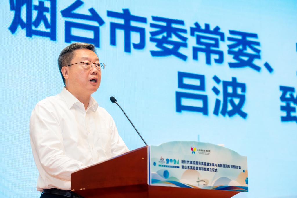 呂波對研討會的召開和山東高校美育聯盟的成立表示熱烈祝賀。他表示,近年來煙臺市堅持把美育作為提升市民文明素質和全社會文明程度的有效手段,全民、全域、全過程推進美育建設,積極探索美育與未成年人思想道德建設、精神文明建設融合發展的方式。煙臺市將以此次研討會為契機,加強與煙臺大學等高校、科研機構的交流合作,創新實施全域、全民、全過程美育工程三年行動計劃,把美育工作融入經濟社會發展全局,讓美德成為煙臺最厚重的文化底色。