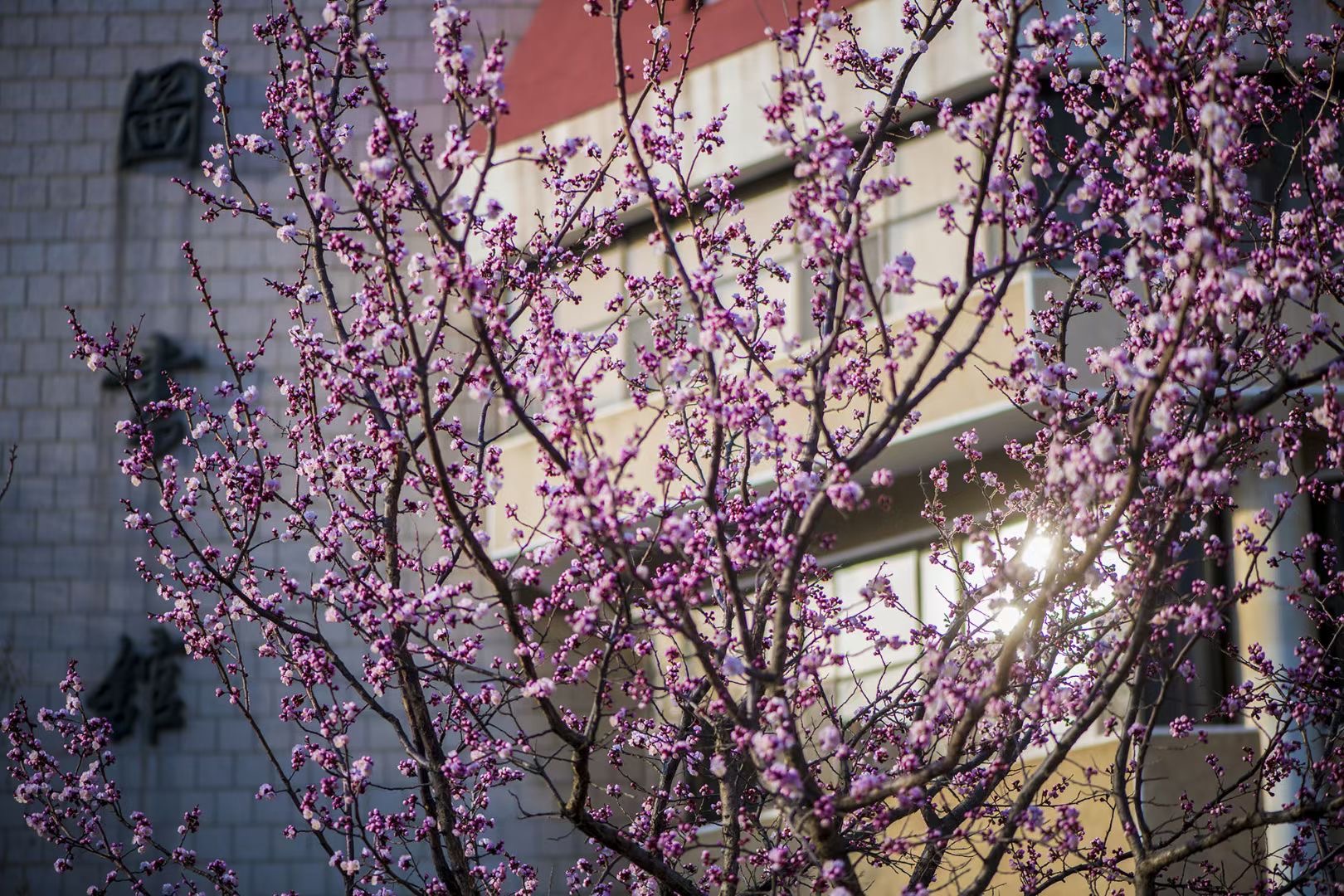那今年春天的煙園是為什么由“粉黛漸次登場”變成“千紅競相綻放”呢?記者帶著疑問,采訪了后勤處物業服務中心工作人員。記者了解到,煙大的植物開花時間確實是主要集中在4月份。受今年溫度影響,3月份溫度整體上升比較快,玉蘭、連翹等早春開花植物花期得以適當延長,與紫荊、櫻花、美人梅等花期有了一定重合度。因此,今年才會出現百花香滿煙園的盛景。