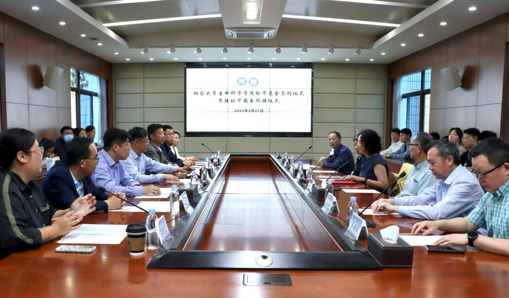 徐雨佳回顧了其父母徐應(yīng)銓、陸瑤華在煙臺大學(xué)的工作經(jīng)歷,表示“銓華基金”的命名,取自父母名字中各一個字,以示紀念與傳承。徐雨佳與煙臺大學(xué)教育發(fā)展基金會秘書長孫旭濤、生命科學(xué)學(xué)院黨總支書記王者旭簽署捐贈協(xié)議。孫旭濤為徐雨佳頒發(fā)基金捐贈證書,圖書館館長任匯江為徐雨佳頒發(fā)圖書收藏證書,王者旭代表生命科學(xué)學(xué)院接受了捐贈支票。