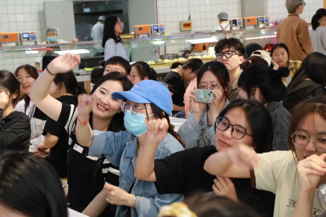 在一進(jìn)餐廳的醒目處,擺放著為同學(xué)們準(zhǔn)備的“驚喜”——一個(gè)長達(dá)六米并印有“祝2023屆畢業(yè)生前程似錦、大展宏圖、快樂無憂”字樣的大蛋糕?!拔乙贿M(jìn)門就看到了這個(gè)大蛋糕,太用心、太感動(dòng)了……”環(huán)境與材料工程學(xué)院的畢業(yè)生徐源在各個(gè)角度拍下這個(gè)專屬于煙大2023屆畢業(yè)生蛋糕的照片,立刻與朋友們“炫耀”這份來自母校的愛。煙臺(tái)大學(xué)副校長王強(qiáng)來到現(xiàn)場與同學(xué)們一起切蛋糕、送祝福、話別離,每一位領(lǐng)取蛋糕的同學(xué)臉上都洋溢著幸福的笑容。“我們每個(gè)人都分到了一塊蛋糕,真甜……”此時(shí)此刻,蛋糕的美味香甜和餃子的濃情滿滿交織在空氣中,彌漫不散,化作聲聲祝福和殷殷期盼,溫暖在畢業(yè)生的心田。