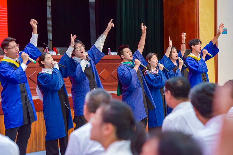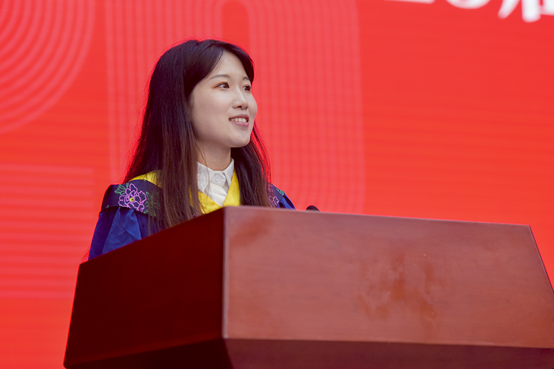 研究生導師代表、山東省高校黃大年式教師團隊負責人、山東省優(yōu)秀教師、數(shù)學與信息科學學院吳昭景教授寄語同學們立志高遠、知行合一、心懷善念,做陽光快樂的人、不糾結的人、有智慧的人、靠譜的人,厚積薄發(fā),在拼搏奮進中收獲成長。2023屆畢業(yè)生代表、生命科學學院碩士研究生張曉萌深情回顧了在煙園的春夏秋冬、四季流轉,滿含對學校的深深眷戀和師長的感激之情,代表全體畢業(yè)生表達了用奮斗開創(chuàng)未來的信心和決心。