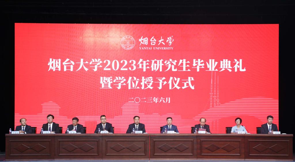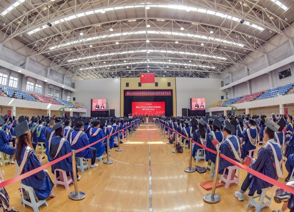 【本站訊】盛夏花開,驪歌聲起。6月16日上午8:30,煙臺大學2023年研究生畢業(yè)典禮在大學生活動中心隆重舉行。學校黨委領導班子成員張殿臣、段培永、郭建國、郝曙光、王強、馮素玲、李存杰、王澤光、于秀國出席典禮,校學位評定委員會委員、機關各部門負責人、各學院黨政主要負責人、研究生導師代表、研究生秘書、研究生輔導員、學生家長代表參加典禮。部分2020屆、2022屆畢業(yè)生受邀返校,彌補曾經因疫情原因未如期舉辦畢業(yè)典禮帶來的遺憾,1000余名博士研究生、碩士研究生帶著母校的叮嚀,從這里奮楫揚帆,開啟人生新征程。