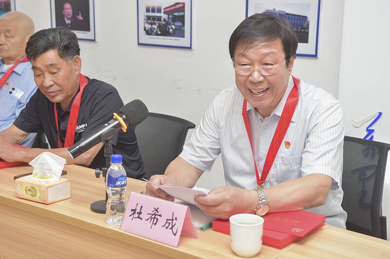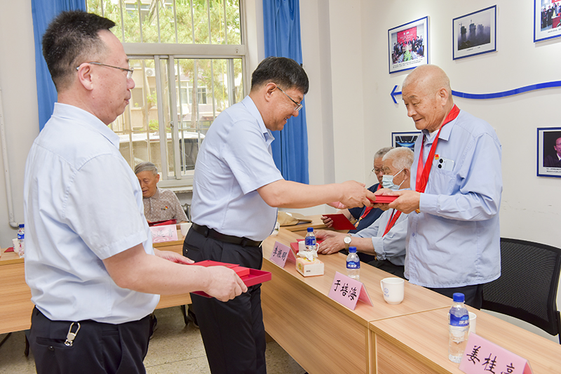 張殿臣為參加本次活動的10位老黨員逐一佩戴“光榮在黨50年”紀念章,王強和王澤光為參會老黨員頒發“政治生日”賀卡,贈送具有紀念意義的“政治生日”禮物。滿滿的“儀式感”,進一步激發了老黨員的榮譽感、歸屬感和責任感,進一步強化了老黨員的身份意識和宗旨意識。