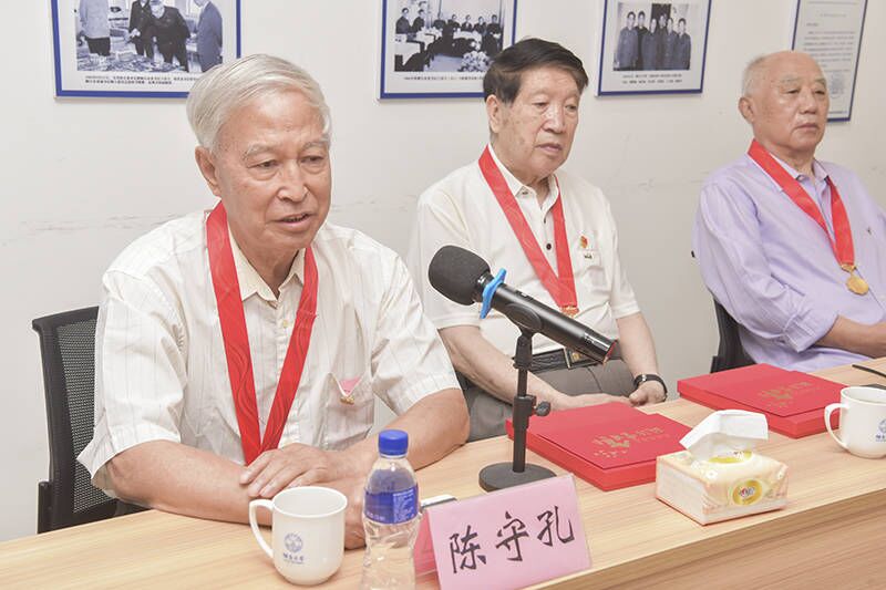 紀念章獲得者杜希成、陳守孔兩位同志作為代表發言,回憶了自己50年前面對黨旗莊嚴宣誓的激動時刻,分享了受黨培養、為黨工作的50年歷程,表示手上的這枚紀念章份量厚重,代表了黨組織對老黨員的關懷和溫暖,在今后工作中要自覺用黨的創新理論武裝頭腦、指導實踐;要帶頭傳承良好家風,厚植愛黨愛國情懷;要積極履行黨員義務,為煙大增光、為黨旗添彩;要繼續為學校發展加油鼓勁,為學校發展建言獻策,為學校事業大局匯聚力量,為全力實現學校學科建設新突破,早日建成特色鮮明、部分學科具有國際影響力的高水平大學貢獻銀齡力量。