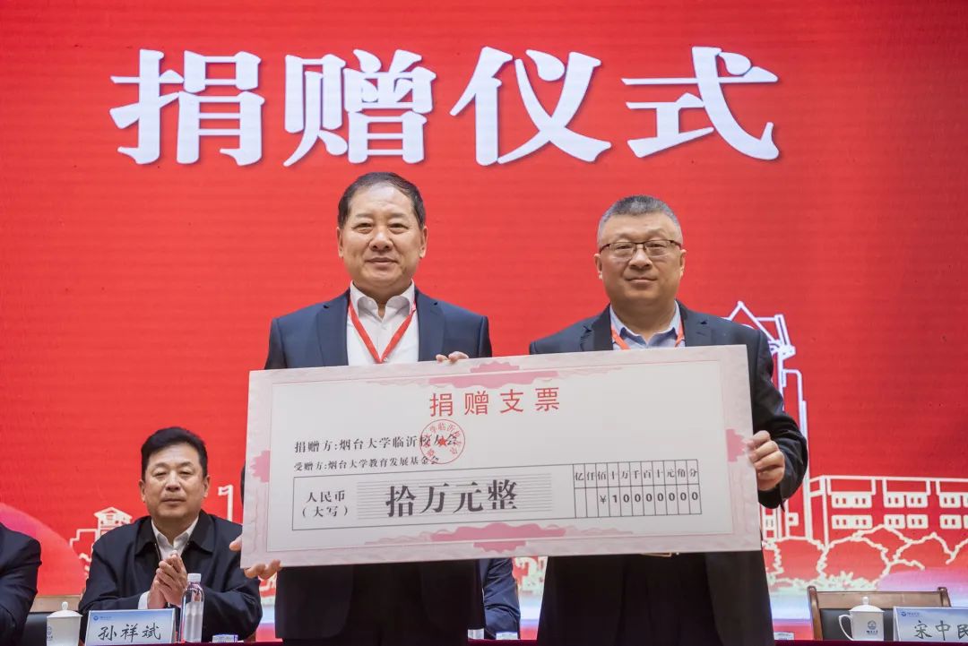 捐贈儀式中,北京校友會、深圳校友會捐贈100萬元,臨沂校友會捐贈10萬元,建筑學院2007級校友朱柯蒙和母親共同捐贈10萬元,濟寧校友會捐贈孔子雕像一座,部分校友設立獎助學金、參加“綠色煙園”樹木認養活動。學校領導代表學校依次接受校友捐贈,北京校友會常務副會長董一鳴、深圳校友會副會長梁立偉、臨沂校友會會長楊中鋒、建筑學院2007級校友朱柯蒙的母親孔英姿、濟寧校友會負責人李貴維,校友代表姜華、王偉、隋陽旸、孫偉、董錕、龐磊、徐康、張海濤、邢雷、韋如雷、張建偉、盧佳琦等到主席臺接受捐贈證書。