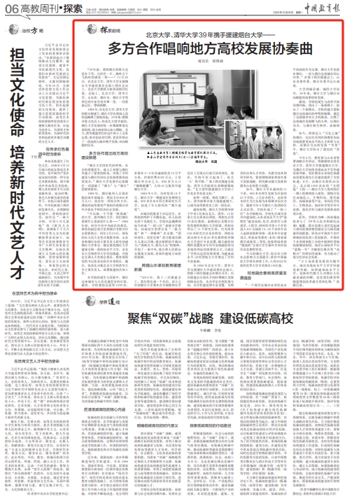【本站訊】編者按:1984年,在北京大學、清華大學的聯合援建下,煙臺大學在黃海之濱的鹽堿灘上拔地而起。39年來,煙臺大學植根齊魯文化沃土、傳承北大清華基因,高質量發(fā)展不斷取得新成效。北大、清華援建者們在煙大這片熱土上無私忘我、艱苦創(chuàng)業(yè)的寫照,傳唱出一段高校與城市攜手發(fā)展、雙向賦能的佳話。12月18日,《中國教育報》06版高教周刊頭條“探索前線”欄目深度報道煙臺大學在北大、清華持續(xù)援建下唱響地方高校發(fā)展協(xié)奏曲的故事。