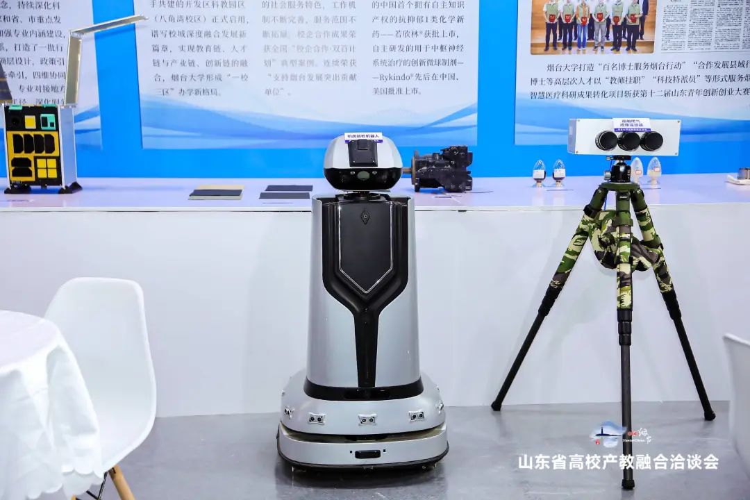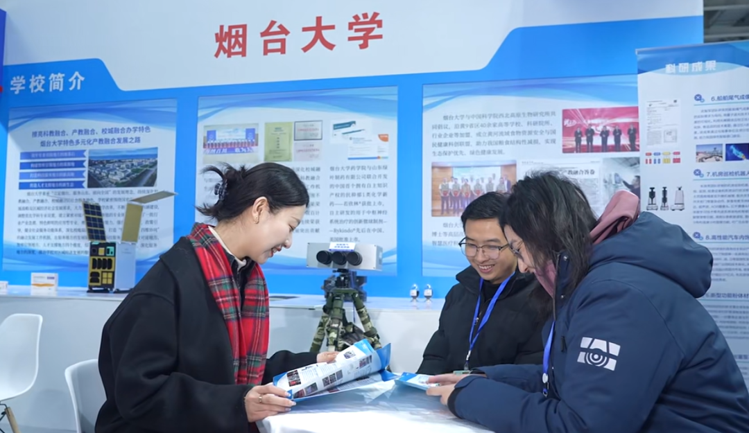 煙臺大學亮相洽談會產教融合主題展覽的科研成果相關實物、部件