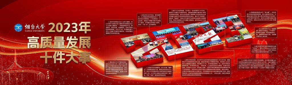 【本站訊】2023年是全面貫徹黨的二十大精神的開(kāi)局之年,也是學(xué)校推進(jìn)高質(zhì)量發(fā)展、加快實(shí)現(xiàn)高水平大學(xué)學(xué)科建設(shè)新突破的關(guān)鍵一年。一年來(lái),全體師生員工以習(xí)近平新時(shí)代中國(guó)特色社會(huì)主義思想為指導(dǎo),踔厲奮發(fā)、篤行不怠,學(xué)校高質(zhì)量發(fā)展取得豐碩成果。為總結(jié)回顧一年來(lái)取得的高質(zhì)量發(fā)展成效、凝聚建設(shè)高水平大學(xué)的磅礴力量,學(xué)校開(kāi)展了2023年度“高質(zhì)量發(fā)展十件大事”評(píng)選活動(dòng)。本次評(píng)選活動(dòng)由黨委(學(xué)校)辦公室、黨委宣傳部、發(fā)展規(guī)劃與學(xué)科建設(shè)處牽頭,圍繞2023年度學(xué)校高質(zhì)量發(fā)展中的重要事件進(jìn)行提名,并提請(qǐng)學(xué)校審定候選事件,經(jīng)過(guò)網(wǎng)絡(luò)投票、各基層黨組織和職能部門(mén)負(fù)責(zé)人投票、學(xué)校黨委綜合評(píng)議,確定了煙臺(tái)大學(xué)2023年高質(zhì)量發(fā)展十件大事。下面讓我們共同回顧屬于每一個(gè)煙大人的2023年。