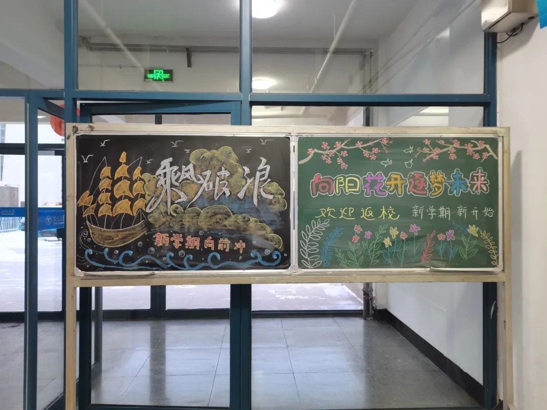 學生公寓內,走廊、浴室等地面角落一塵不染,飲水機、吹風機等生活設施整齊完好,宿管阿姨畫好了黑板報,用筆端五顏六色的浪漫色彩繪就出最溫暖動人的“回家”溫度。