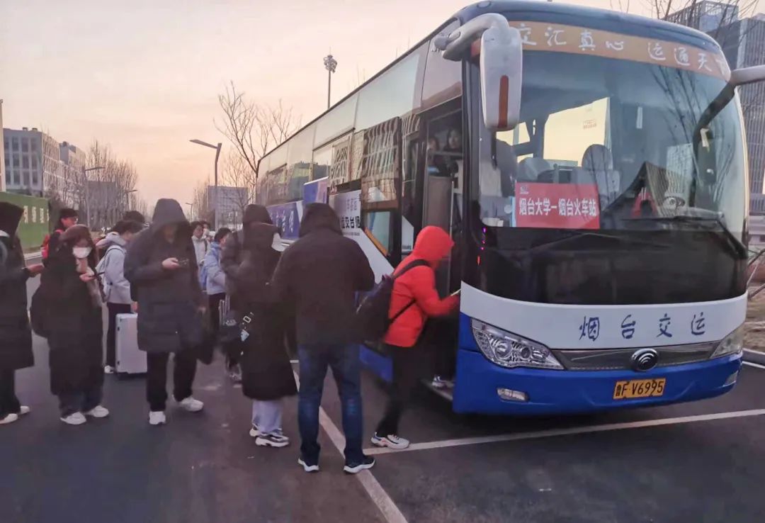 迎接學子的不僅是周到細致的各項準備,更是無微不至的暖心關懷。經與煙臺市交運集團協調,學校于2月23日至2月26日開通八角灣校區師生寒假返校接站服務。