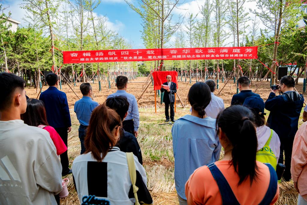 郝曙光代表學(xué)校全體師生員工向廣大沂蒙校友的拳拳赤子之心、殷殷桑梓之情表示衷心感謝。他表示,煙臺(tái)大學(xué)迎來(lái)建校40周年,學(xué)校將舉辦一系列相關(guān)活動(dòng)。為進(jìn)一步凝練校園文化、弘揚(yáng)煙大精神、暢敘校友情誼,校友工作辦公室積極聯(lián)系、臨沂校友會(huì)鼎力支持和熱情參與,“沂蒙銀杏林”順利落成,這是學(xué)校“奮楫揚(yáng)帆四十載 春華求實(shí)滿庭芳”——煙臺(tái)大學(xué)四秩校慶“飲水思源、愛(ài)在煙園”捐贈(zèng)系列重要活動(dòng)之一,為建校40周年系列活動(dòng)的順利開(kāi)展奠定了良好開(kāi)局。他希望廣大校友繼續(xù)保持對(duì)母校的深情厚誼,持續(xù)關(guān)心關(guān)注母校的建設(shè)發(fā)展、支持母校各項(xiàng)工作,共同把煙臺(tái)大學(xué)培植得如同銀杏林一樣枝繁葉茂、欣欣向榮。