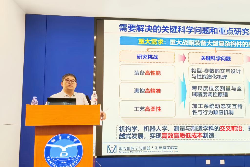 劉辛軍教授介紹了自然界生命體構(gòu)成及其行為規(guī)律,隨后介紹了機器人基礎(chǔ)理論三個核心問題的研究現(xiàn)狀與成果,并結(jié)合國家戰(zhàn)略裝備對高效高質(zhì)量加工的重大需求,闡述了加工機器人技術(shù)及裝備方面的創(chuàng)新性工作及應(yīng)用,同時對高端制造裝備行業(yè)的發(fā)展愿景進行展望。在交流互動環(huán)節(jié)中,機電學(xué)院教師及研究生就并聯(lián)機器人相關(guān)問題與劉辛軍教授進行了深入探討和交流。