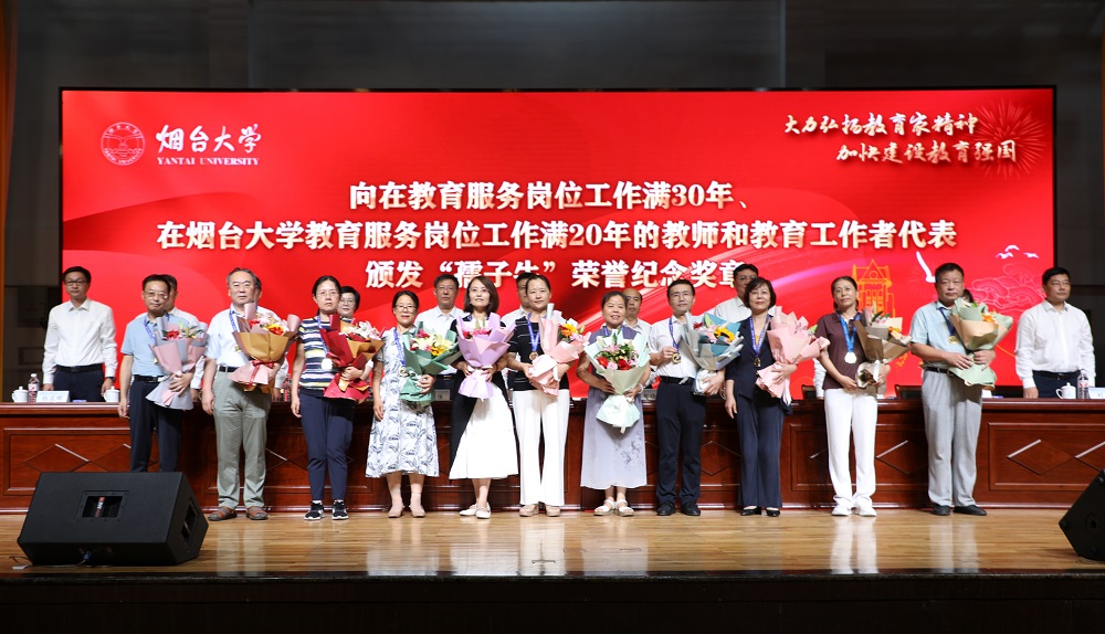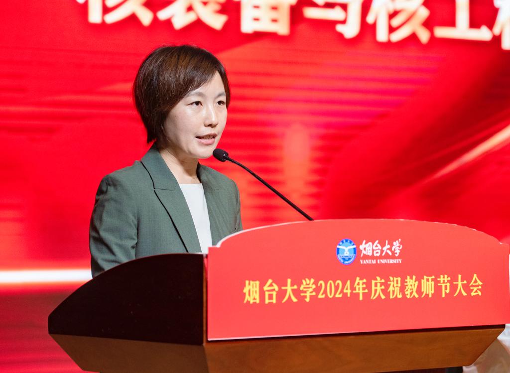 【本站訊】9月10日下午,煙臺大學在弘毅廳舉行2024年慶祝教師節(jié)大會,隆重表彰學校2023-2024學年省級及以上榮譽獲獎?wù)吆?024年度煙臺大學榮譽體系獲獎教職工,向在煙臺大學服務(wù)滿40年的老同志頒授“光榮在校40年”紀念章,向在教育服務(wù)崗位辛勤耕耘滿30年和20年的教師和教育工作者頒授“孺子牛”榮譽紀念獎?wù)拢M織新入職教師進行集體入職宣誓。黨委書記盧國強代表學校黨委向全體教職員工致以節(jié)日的問候,并發(fā)表題為《大力弘揚教育家精神,為加快建成特色鮮明、開放創(chuàng)新、國內(nèi)外具有重要影響力的高水平大學貢獻力量》的講話,黨委副書記、校長郝曙光主持慶祝大會,學校黨委領(lǐng)導(dǎo)班子成員王強、白青、馮素玲、姚昌、張獻勇、王麗、初磊、劉偉、楊眾暉出席。