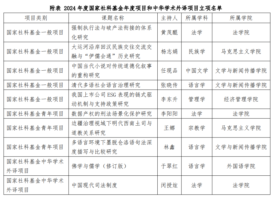 【本站訊】近日,全國哲學(xué)社會科學(xué)工作辦公室公布了2024年度國家社科基金年度項(xiàng)目立項(xiàng)結(jié)果,煙臺大學(xué)共獲批國家社科基金項(xiàng)目10項(xiàng),其中年度項(xiàng)目8項(xiàng)(包括一般項(xiàng)目5項(xiàng)、青年項(xiàng)目3項(xiàng)),立項(xiàng)數(shù)位列全省高校第10位(省屬高校第8位);中華學(xué)術(shù)外譯項(xiàng)目2項(xiàng),位列全省高校第2位(省屬高校第1位),立項(xiàng)數(shù)創(chuàng)新高。