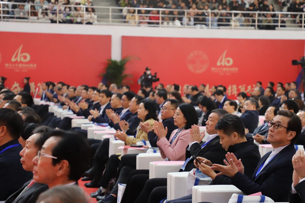 兄弟高校代表、青島大學校長魏志強,國(境)外友好院校代表、韓國檀國大學理事長張淏星分別致辭,祝賀煙臺大學40年來所取得的辦學成就,表示愿與煙臺大學在更廣范圍、更深層次、更高水平上深化合作、共謀發展。