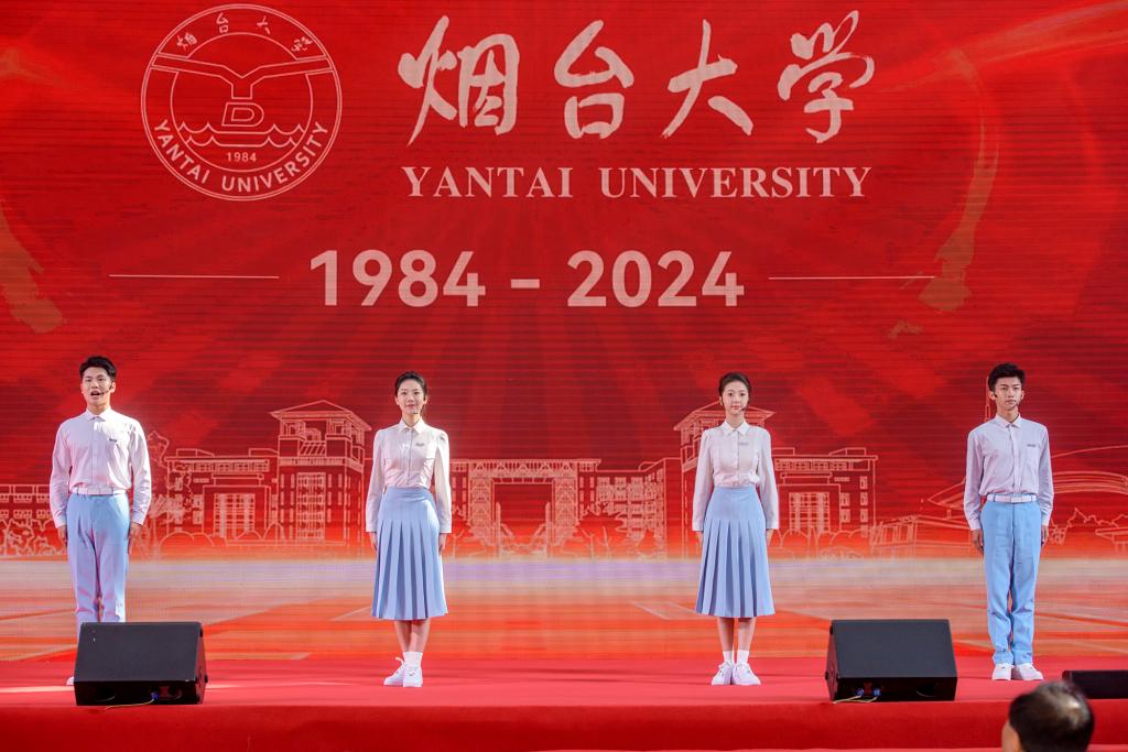 會上還播放了國外及港澳臺地區友好院校和學術機構的祝福視頻,煙大青年學子以一首原創獻詞《韶華與共四十載,奮楫篤行向未來》獻禮煙大。