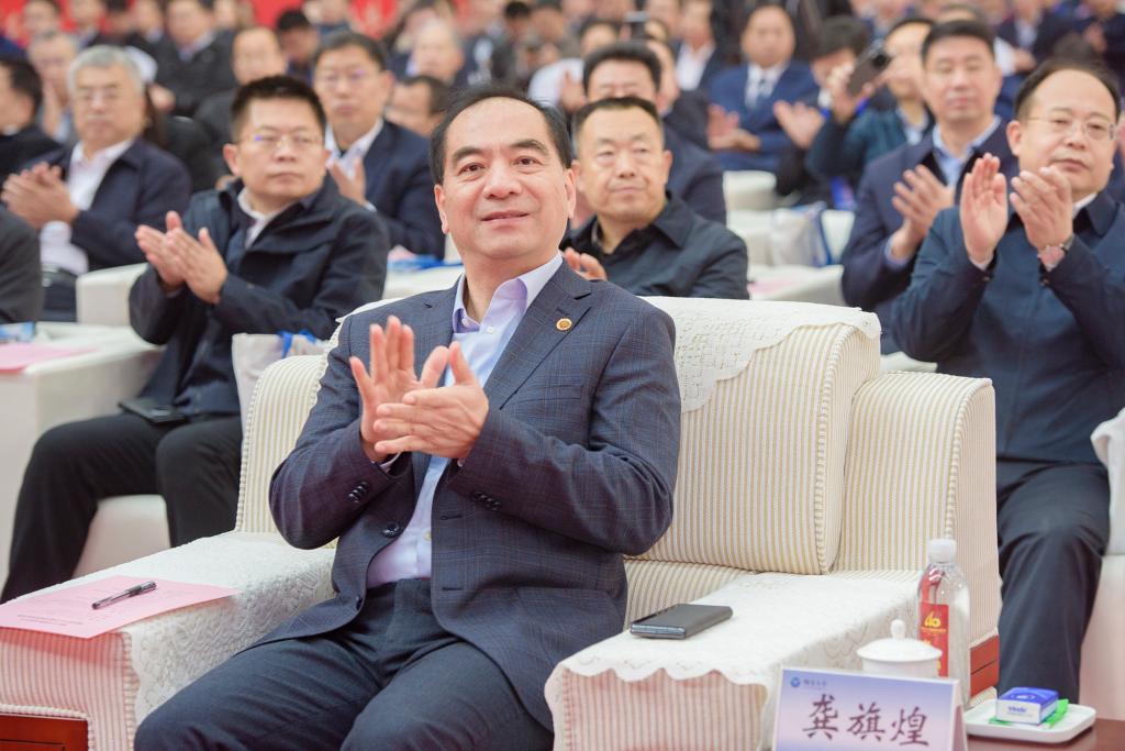 盧國強在主持大會時代表煙臺大學全體師生員工,向各位領導、來賓、校友致以熱烈歡迎和誠摯感謝,向長期以來關心關注、大力支持學校事業發展的社會各界朋友致以崇高敬意。盧國強表示,今天的盛會,是建設高水平大學承前啟后的里程碑,是全體煙大人團結奮進、再創輝煌的新起點,學校將以本次會議為契機,堅持以習近平新時代中國特色社會主義思想為指導,全面貫徹落實黨中央決策部署和省委省政府要求,勇擔使命,奮楫爭先,加快高水平大學建設步伐,為國家富強,民族復興偉業作出新的更大貢獻。