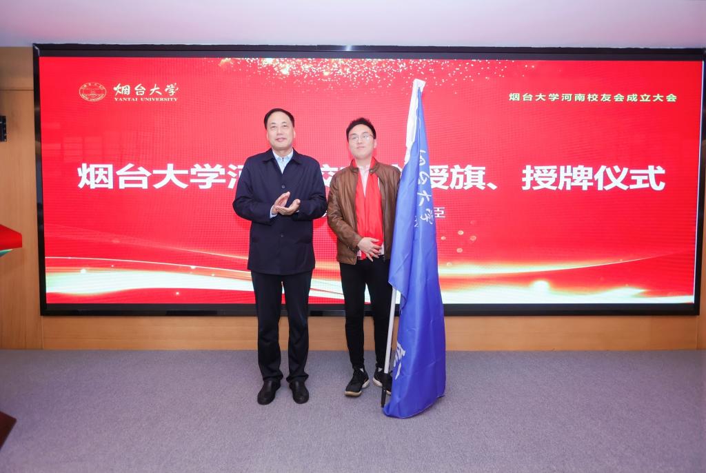【本站訊】魯豫一家親,共續煙大情。10月26日,煙臺大學河南校友會在鄭州成立,學校原黨委書記張殿臣出席并為河南校友會授旗、授牌,黨委常委、副校長張獻勇致辭并頒發河南校友會第一屆理事會成員聘書和“校友之家”牌匾,河南省山東商會代表,兄弟校友分會代表,學校文學與新聞傳播學院、外國語學院、法學院、合作發展處、校友工作辦公室等單位負責人以及來自河南省各地市的煙大校友代表共30余人參加成立大會。大會由文學與新聞傳播學院2015級校友李奕萱主持。