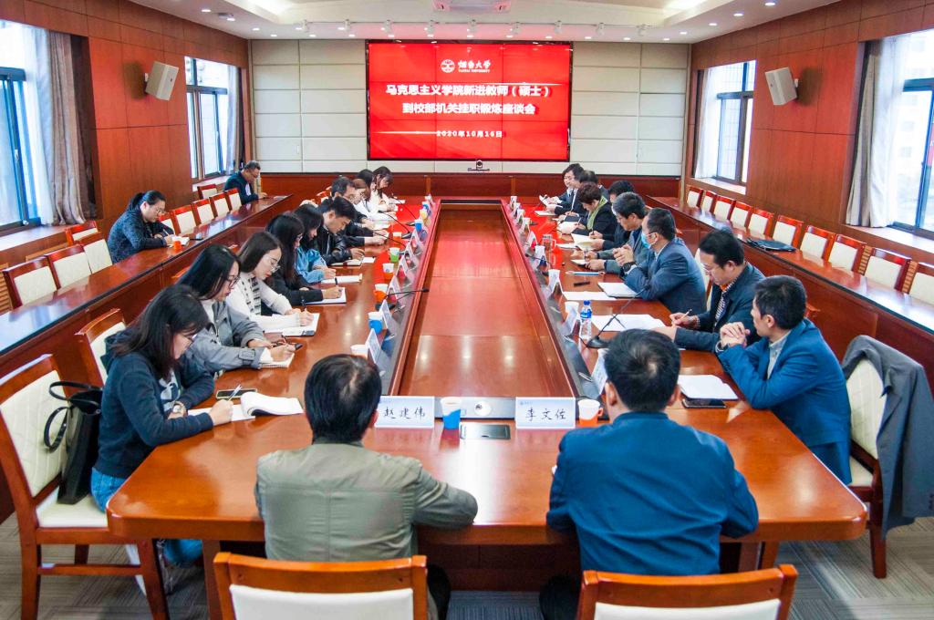 10月16日下午,煙臺大學(xué)召開年輕教師到校部機關(guān)掛職鍛煉座談會。黨委常委、副校長孫祥斌出席會議并講話。參加掛職鍛煉的馬克思主義學(xué)院年輕教師、派出和接收單位負責(zé)同志、黨委組織部有關(guān)同志參加座談。