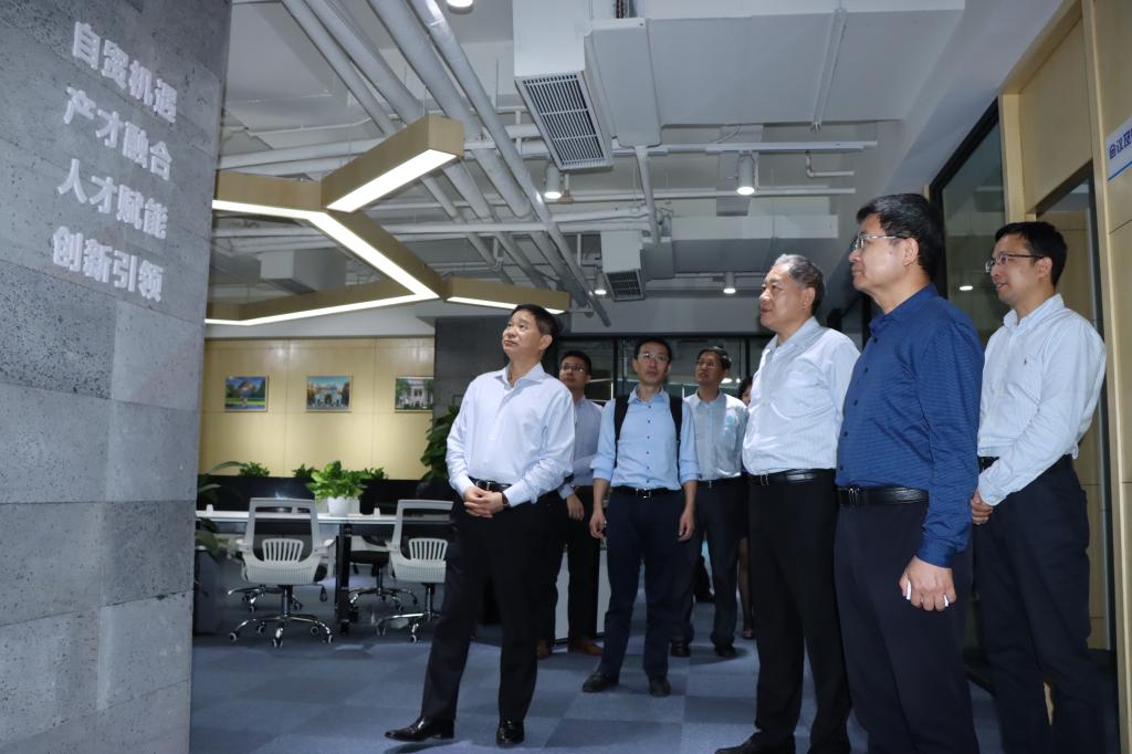 在深圳清華大學研究院,嵇世山對張偉一行到訪表示熱烈歡迎,并陪同參觀深研院展廳。嵇世山詳細介紹了研究院的成立背景、孵化體系、機制體制創新及在孵重點項目等情況。雙方就科技成果轉化體制機制模式創新以及一些重點項目的對接合作等方面交流了意見。