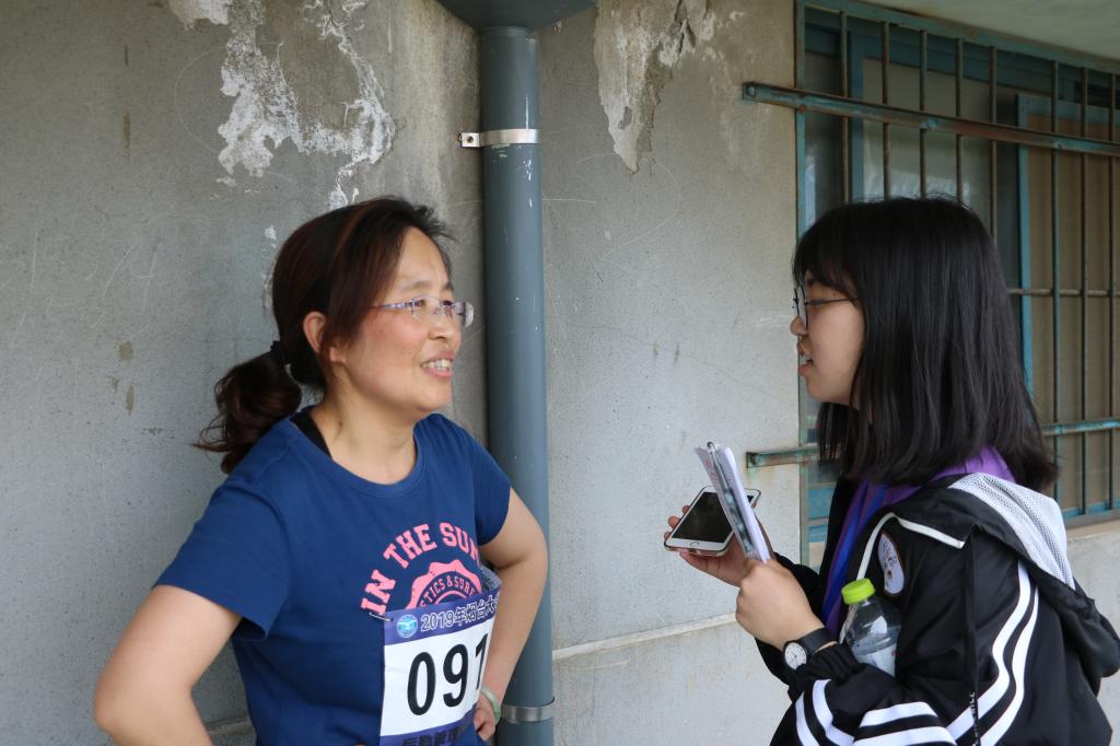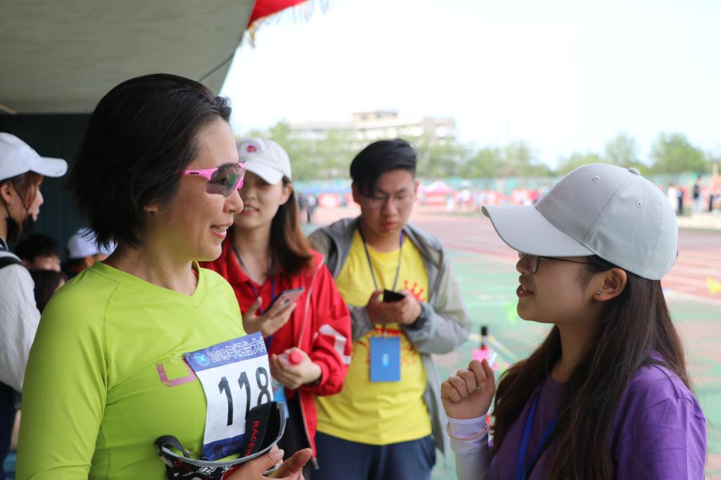 一聲槍響,只見老師們奮力沖出。四百米本就是一個極具挑戰的項目,需要極大的耐心和毅力。只見一位身穿綠色衣服,戴著護目鏡的老師遙遙領先,沖過終點,贏得小組第一。這位老師便是數學信息科學學院的滕雪玉老師,滕雪玉老師從小熱愛運動,自己經常堅持鍛煉,曾經參加過鐵人三項、馬拉松等比賽。她向記者說道:“我覺得運動會是一個展示集體風貌的好機會,大家一定要參加。同時,在比賽前我會調整好自己的食譜,讓自己處于一個比較健康的狀態。這次比賽我對自己的表現是比較滿意的。”