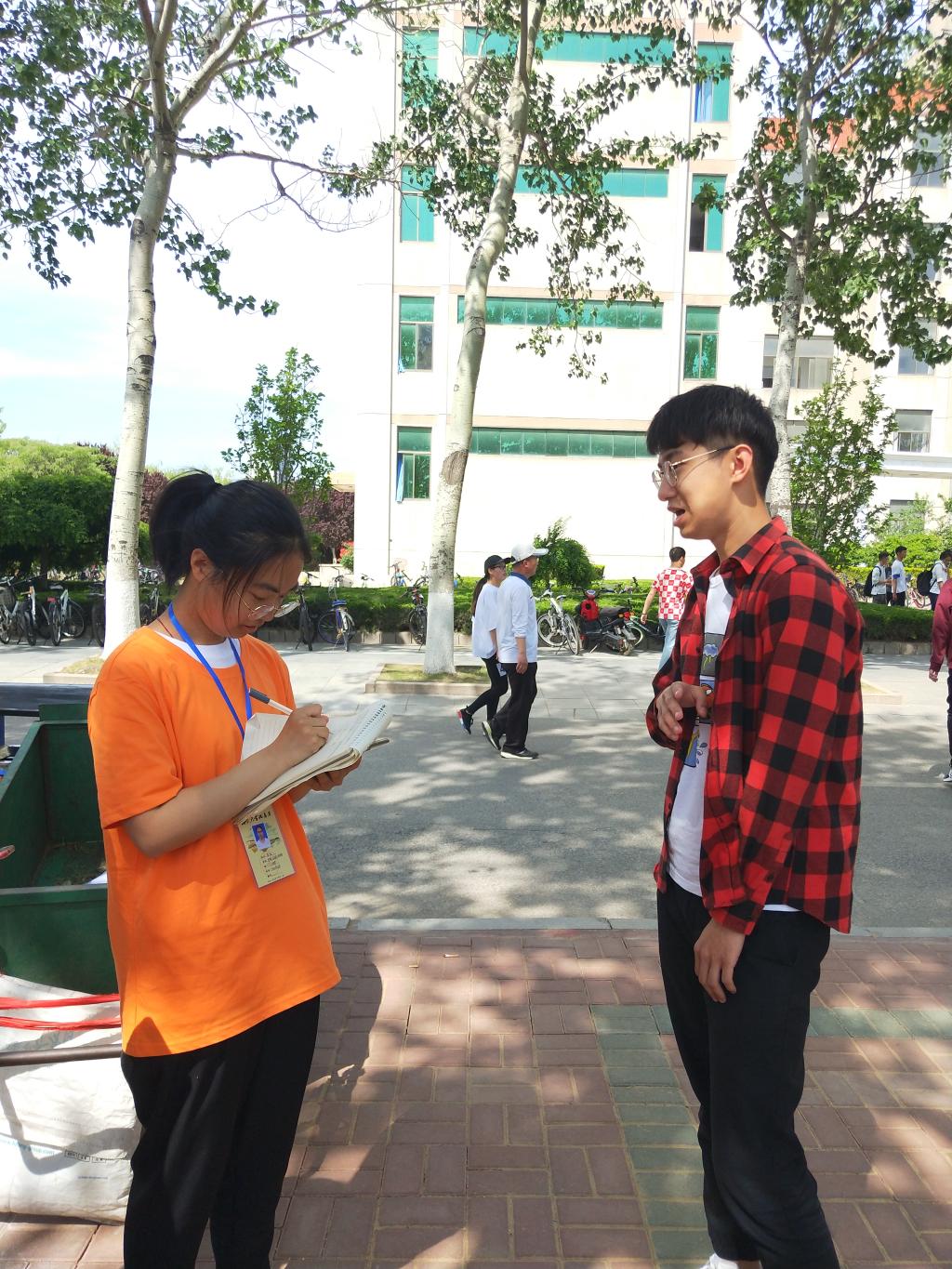 5月16日9時29分,環境與材料工程學院在五教旁的空場地上進行集體跳繩預賽前的準備練習。